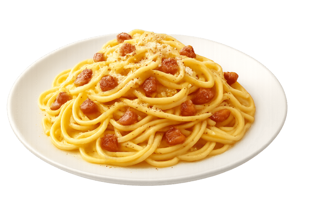 Spaghetti mit Ei, Speck und Parmesan in cremiger Sauce