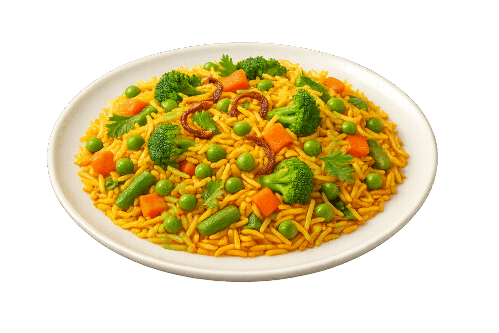 Basmati-Reis mit gemischtem Gemüse und indischen Gewürzen